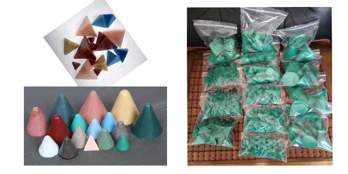 此種研磨石用于鋁合金、鋅合金、銅、樹脂(塑料)等材質(zhì)較軟的工件去批鋒、毛邊、倒角、去氧化皮、電鍍前粗磨,常用于家私五金(如拉手、鎖具等)及箱包五金(如皮帶扣、箱包扣、鞋扣等),主要有圓錐形、正三角形、子彈形,用戶可以根據(jù)工件的形狀及大小來選擇研磨石的規(guī)格。